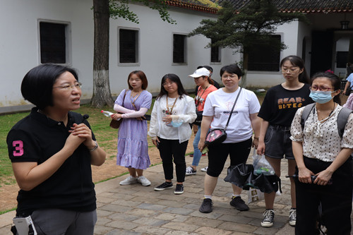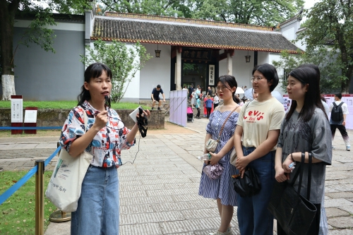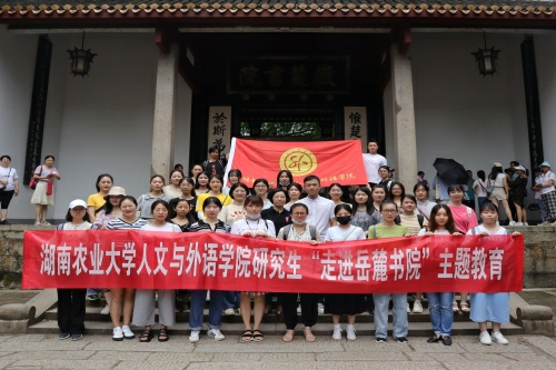 时值季夏,岳麓书院古树参天,绿意盎然。6月16日上午,湖南农业大学人文与外语学院研究生导师代表周芬芬教授,耕读书会会长常琳副教授,研究生辅导员姜启凡老师,全体研究生党员与2020级全体研究生前往中国共产党“实事求是”思想路线策源地——岳麓书院,开展“走进千年学府,探寻湖湘精神”实践学习活动,接受党史教育和革命精神洗礼。