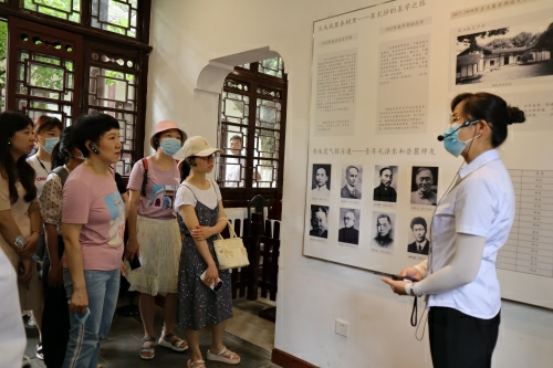 全体成员循着毛泽东寓居岳麓书院的生活场所和习近平总书记湖南考察足迹,踏过书院头门、大门和二门,先后参观了赫曦台、讲堂、御书楼等处,领略千年学府蕴藏的深厚湖湘文化精神。大家通过丰富的陈列品和生动的影像,重温了青年毛泽东将“实事求是”精神内涵内化为思想武器的过程,进一步理解习近平总书记考察湖南时的重要讲话精神。在讲堂“实事求是”匾额下,周芬芬教授与青年学子们分享了自己对学术“求真”的见解,常琳副教授与学生一起探讨了湖湘文化的传承与创新,师生共同探寻湖湘文化精神对中国近现代革命的贡献,追溯共产党员的初心与使命。