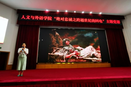 习近平总书记在广西考察调研时指出,湘江战役是红军长征的壮烈一战,是决定中国革命生死存亡的重要历史事件。“绝命后卫师”红34师师长陈树湘完成掩护任务后断肠铭志、英勇就义。6月17日下午,人文与外语学院党委在修业讲堂举行“绝对忠诚之跨越世纪的回电”主题党课活动。本次党课由中共中央党史和文献研究院刘少奇思想生平研究会常务理事、陈树湘绝对忠诚宣讲团团长、刘少奇天华调查纪念馆馆长杨义主讲,长沙市优秀基层理论宣讲员刘彦共同参与完成。学院全体党员、2019级、2020级全体学生参加了本次别开生面的党课学习。