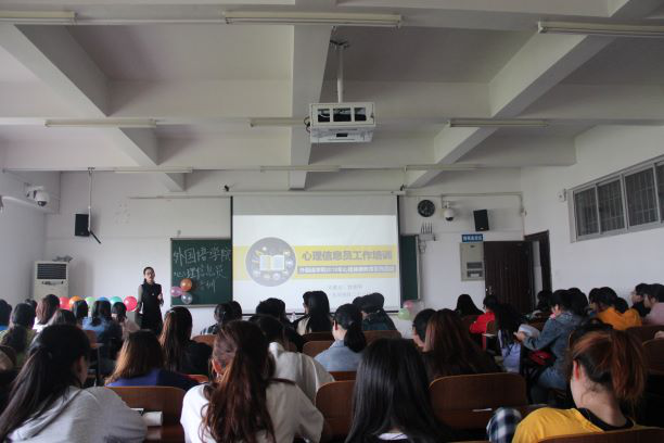 4月23日中午,为了引起同学们对心理健康的关注,外国语学院在九教北408开展了心理信息员的培训工作。外国语学院学工组曾葵华老师作为主讲人出席了本次活动,17级—18级的各班班级心理委员和寝室心理信息员到场聆听学习。