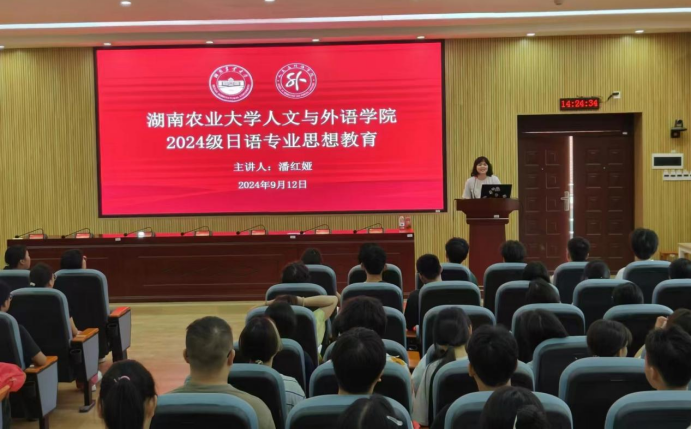 范丽群、日语系主任潘红娅分别做了英语专业和日语专业的思想教育与爱农教育,从学院专业建设、内涵发展、育人成效等方面提高新生专业认识,倡导全体新生强化爱农兴农意识,提升专业+农业互融互创能力,促进新生立足专业做好大学规划,为未来大学四年学习、成长奠定基础。