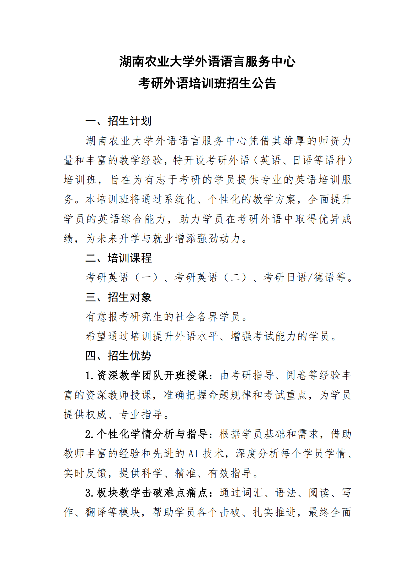 【外语语言服务中心】 考研外语培训班招生公告