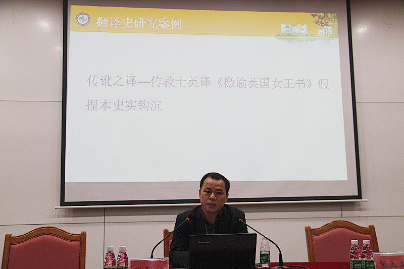 邓联健教授根据自己在MIT和哈佛大学的访学经历和在清华大学攻读博士的求学体验,以林则徐《檄谕英国女王书》假捏本英译案例,围绕“史料掌握与翻译史教学”这一主题展开了精彩的演讲。结合大量宝贵的翻译史料以及自身收集、整理和研究资料的艰辛历程,邓教授从晚清来华新传教士的汉英翻译活动说起,阐述了早期来华新传教士借翻译活动所进行的委曲传教。尤其是对林则徐《檄谕英国女王书》的英译是一次“传讹之译”。