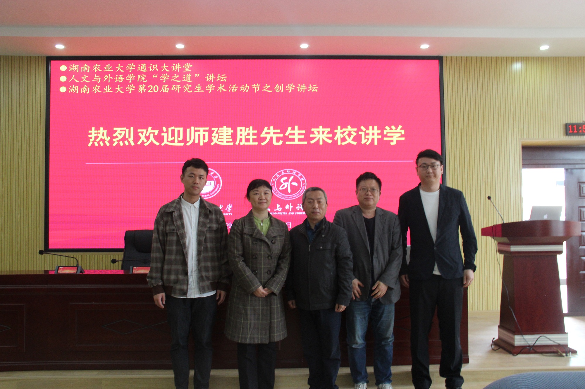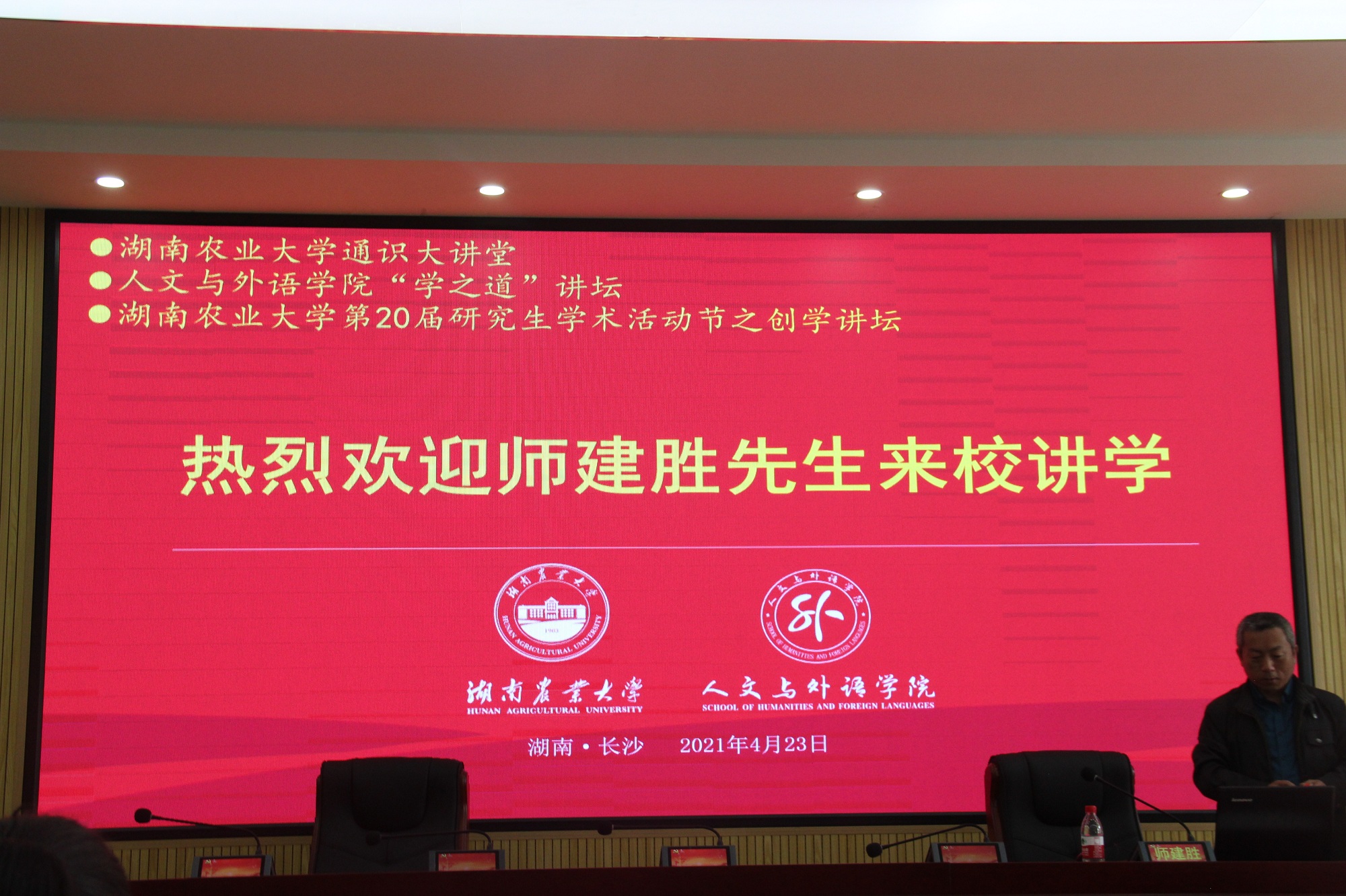 4月23日上午,湖南农业大学通识大讲堂,人文与外语学院“学之道”讲坛,湖南农业大学第20届研究生学术活动节之创学讲坛特邀试译宝总经理师建胜先生来校讲学,讲座主题为“翻译行业前沿和职业规划”。讲座由人文与外语学院副院长谭燕萍主持,学院教师、各年级研究生与本科生代表参加了本次讲座。