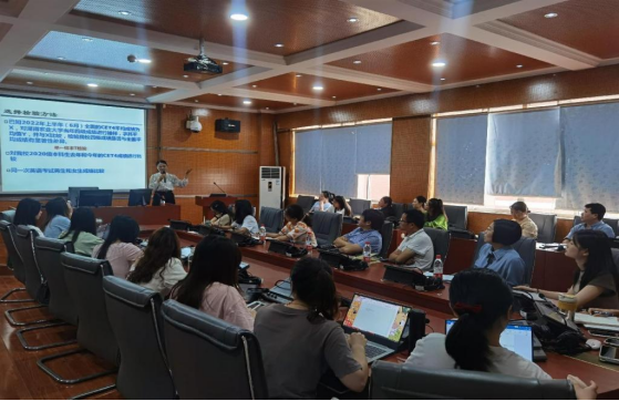 林椿博士以“外语教学与测试中的定量方法”为题,从实证研究、研究前沿及研究计划三个阶段进行阐述,以生动形象的案例解释了样本T检验方法之间的区别,并通过自己实际的科研经历针对测试题型、测试效度与测试技能等问题展开对话式研讨。林椿博士认为,作为青年学者,要针对前沿的研究问题选择合适的研究方法,在前人的基础上找到创新点,从而拓展研究领域的宽度与广度。