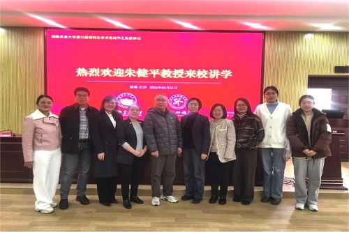2024年3月21日下午,人文与外语学院特邀湖南大学朱健平教授参加湖南农业大学第23届研究生学术活动节之名家讲坛和教师发展活动。学院副院长范丽群主持,全院百余名师生在9教南502参加了讲座。