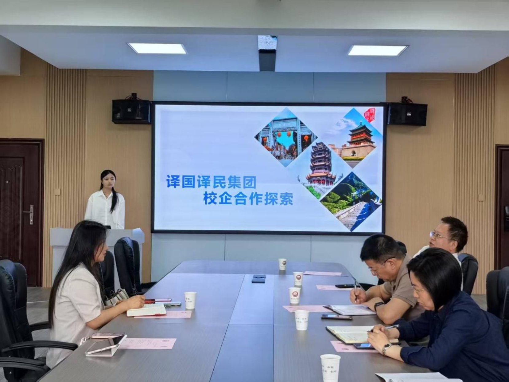 袁光敏代表学院对译国译民集团的到访表示热烈欢迎,并介绍了学院的学科建设、人才培养及发展愿景。他表示,学院始终秉持开放办学理念,期待通过共建校企实习基地,在翻译人才培养、实践教学改革、就业创业指导等领域开展实质性合作,实现资源共享、优势互补的协同发展格局。
