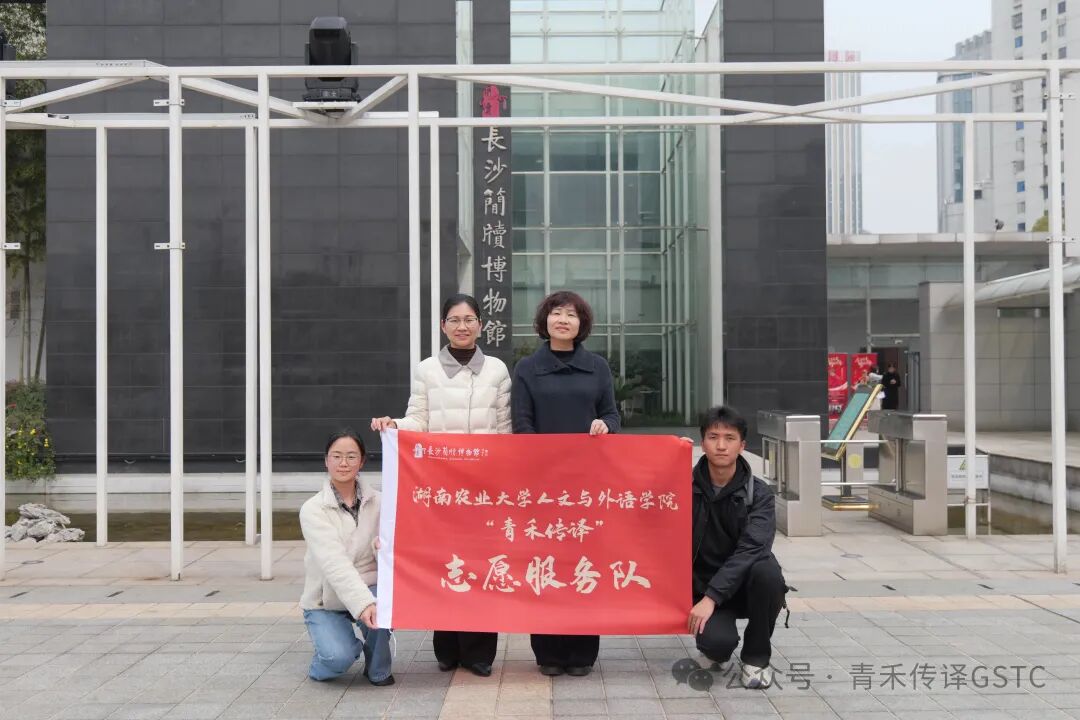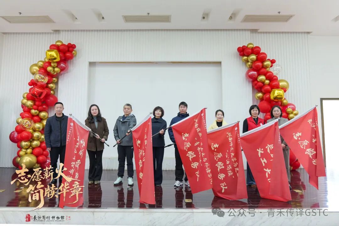3月7日,湖南农业大学人文与外语学院“青禾传译”志愿服务队指导老师陈颖、曾葵华带领志愿者赴长沙简牍博物馆参加2025年度志愿者工作总结表彰大会。会上,“青禾传译”志愿服务队正式加入“简博志愿分队”,陈颖老师代表志愿团队接受授旗。