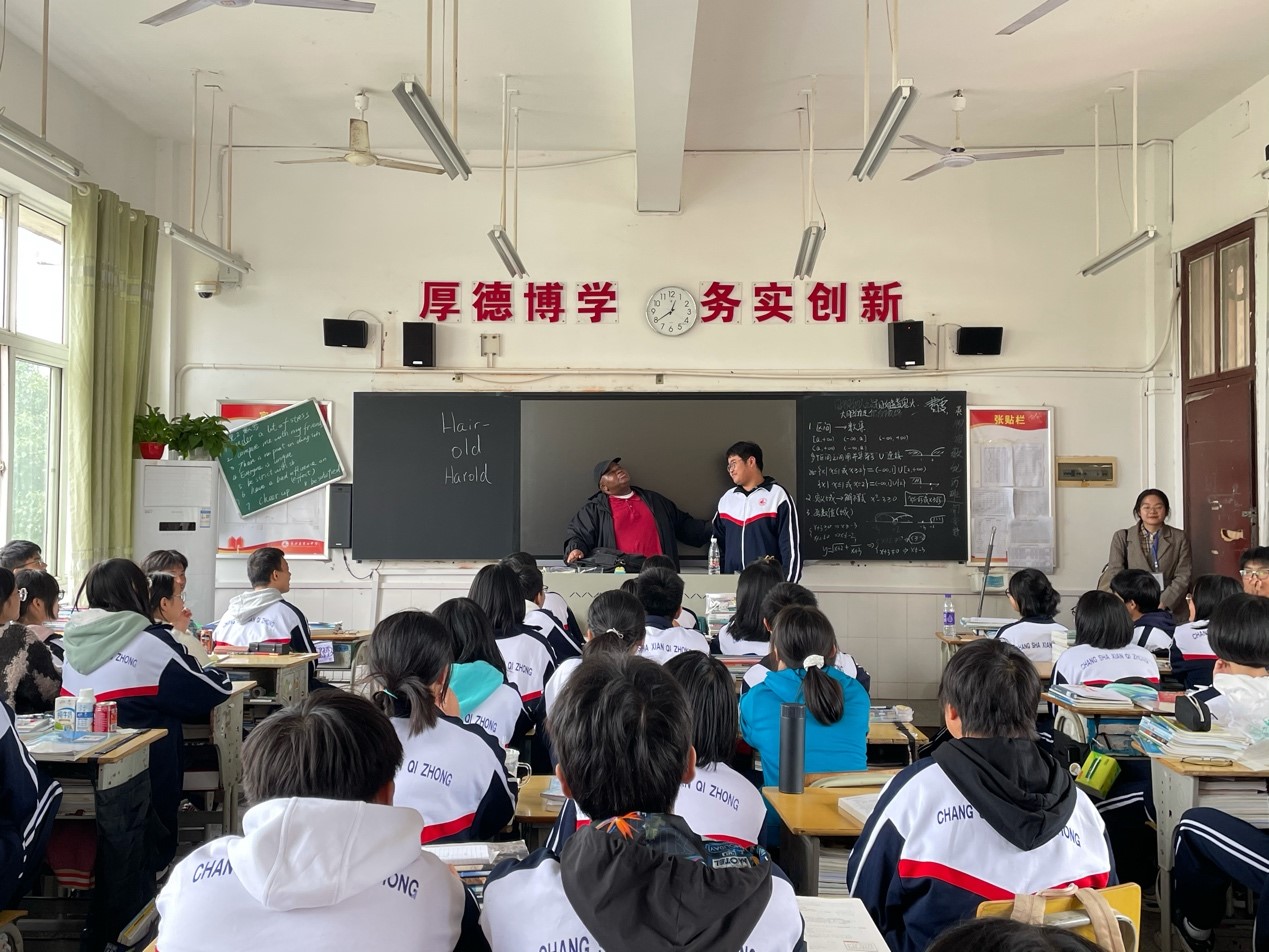 会议结束后,来自美国德克萨斯州的外教Harold在范校长的带领下进入各个班级,用英语与学生们进行了互动交流。他以丰富的教学经验和幽默风趣的教学风格很快拉近了与学生之间的距离,课堂气氛迅速活跃起来,教室里笑声、掌声不绝于耳。