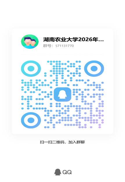 办公室电话0731-84673801或通过扫以下二维码进“湖南农业大学2026年外国语言文学学术型硕士、翻译硕士调剂交流”QQ群,进行咨询交流。