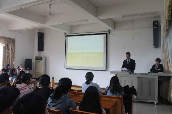 5月8日中午,外国语学院在九教南511举办外文趣味知识竞赛初赛,评委团由英语系李丹老师、日语系杨芳老师以及15级英语1班罗飞同学担任。本次外文趣味知识竞赛旨在通过多种多样的竞赛形式,激发同学们的想象力和创造力,同时进一步增强团队合作精神和班级凝聚力,丰富和活跃校园文化生活。