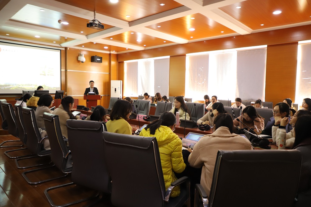 12月5日下午2:30,由研究生院主办、人文与外语学院承办的湖南农业大学第二十七期暨人文与外语学院第二期“我与导师面对面”交流活动在九教北611同传室顺利召开。本次交流嘉宾为我院大学英语教学部主任范丽群副教授、英语系教师王建辉副教授,学生交流代表为2017级硕士研究生李婷玉、2018级章苏敏、2019级陆怡儿。研究生学工组曾葵华老师和我院在校硕士研究生全体出席了本次交流活动。