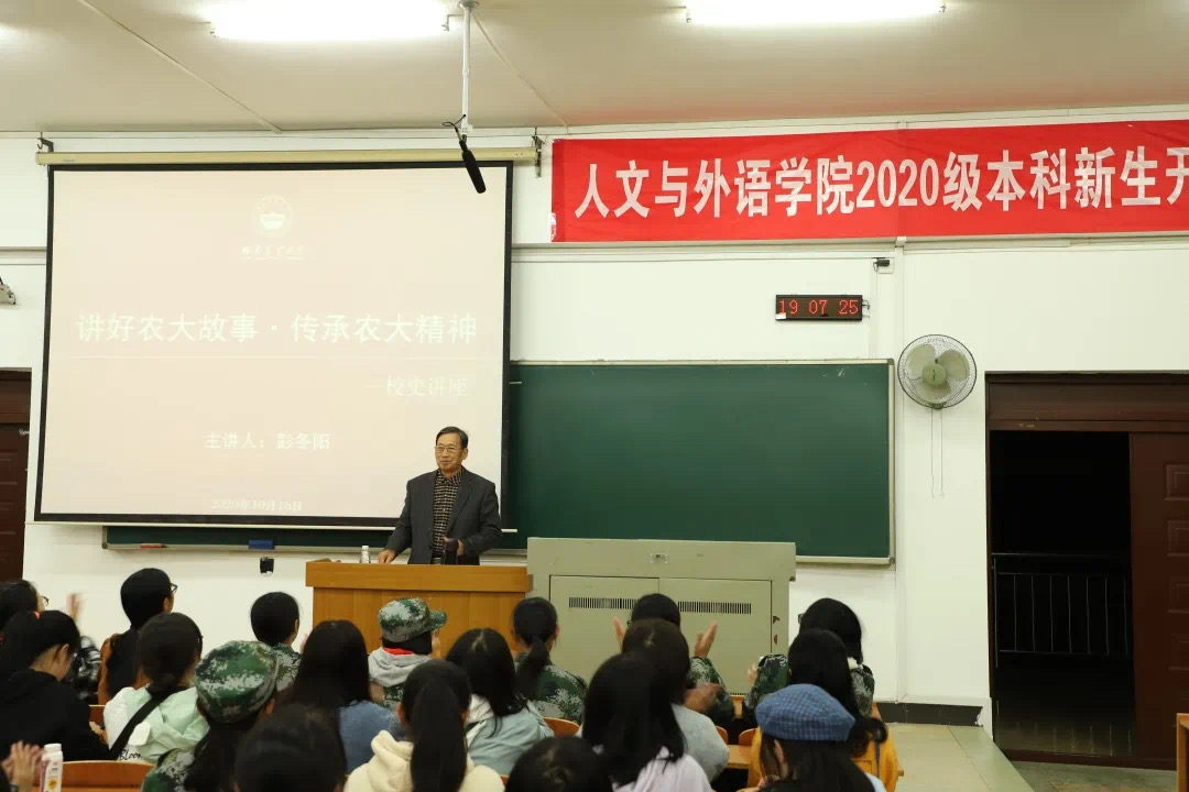 为让我院2020级新生了解农大历史,培养农大精神,10月16日晚7点整,我院于九教南502顺利举办了以“讲好农大故事,传承农大精神”为主题的校史讲座。关工委彭冬阳老师受邀为主讲人出席讲座,20级全体新生到场聆听。