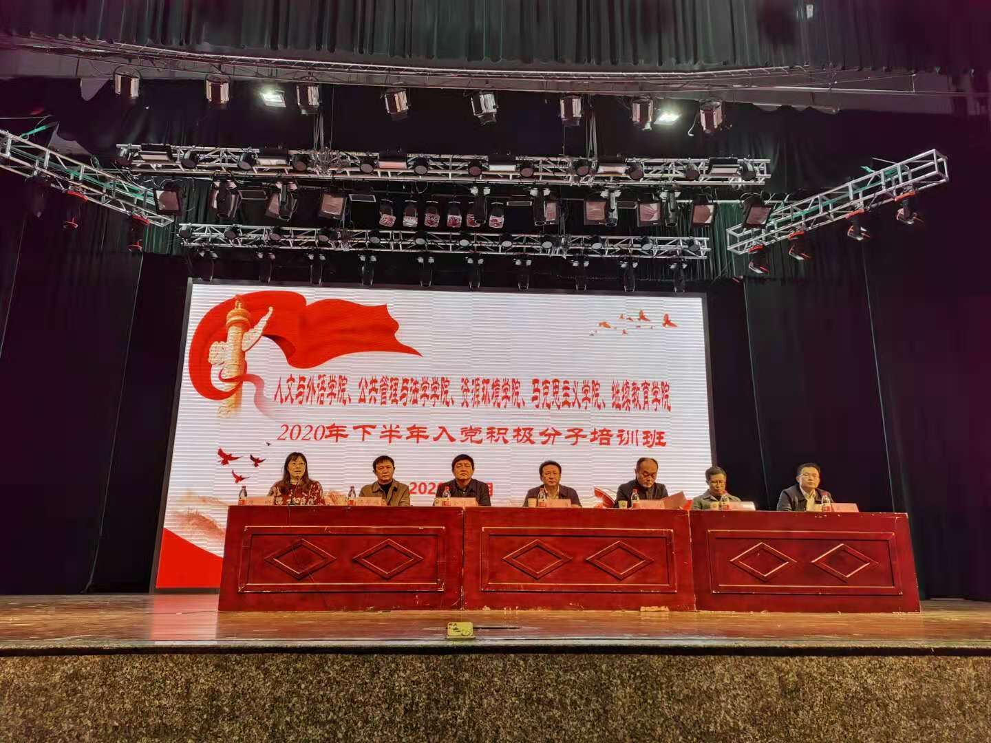 11月21、22日,人文与外语学院、资源环境学院、公共管理与法学学院、马克思主义学院、继续教育学院共计580余名入党积极分子在学校大礼堂开展2020年下半年入党积极分子集中培训。本次培训由人文与外语学院主办,整个培训流程共分为开班仪式、党课讲授、讨论学习践行三个部分,培训目的在于促使新进入党积极分子们深化党的基本知识,强化对党的正确认识,端正入党动机,提高入党积极分子的整体素质。