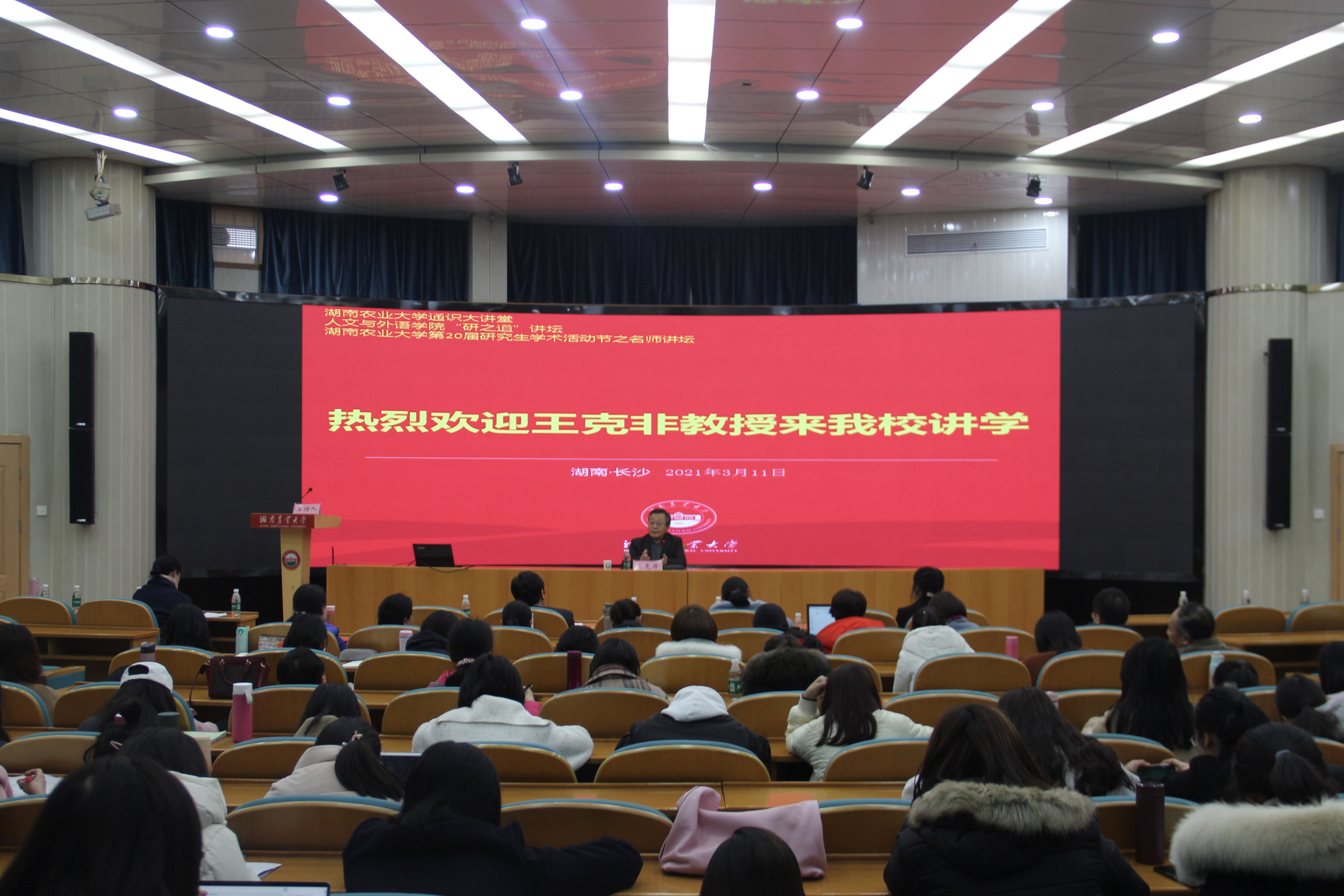 2021年3月11日下午,人文与外语学院“研之道”讲坛本年度首次开讲在国际会议厅举行。活动特邀北京外国语大学讲席教授王克非主讲,学院谭燕萍副院长主持,院长胡东平、党委书记林丽娅等学院领导及全体专任教师、研究生参加。