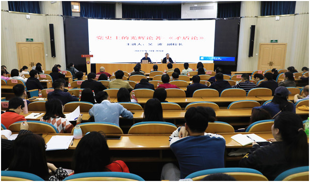 吴波阐述了《矛盾论》的写作背景、主要内容和对学校工作的指导意义。他指出“矛盾论”是毛泽东对中国共产党在十年土地革命战争时期的经验和教训所做出的深刻的哲学总结,既密切联系了中国革命的实际情况,具有丰富而深刻的历史内涵,又具有哲学的抽象性和普遍性,升华为一种具有长久生命力和影响力的哲学智慧。