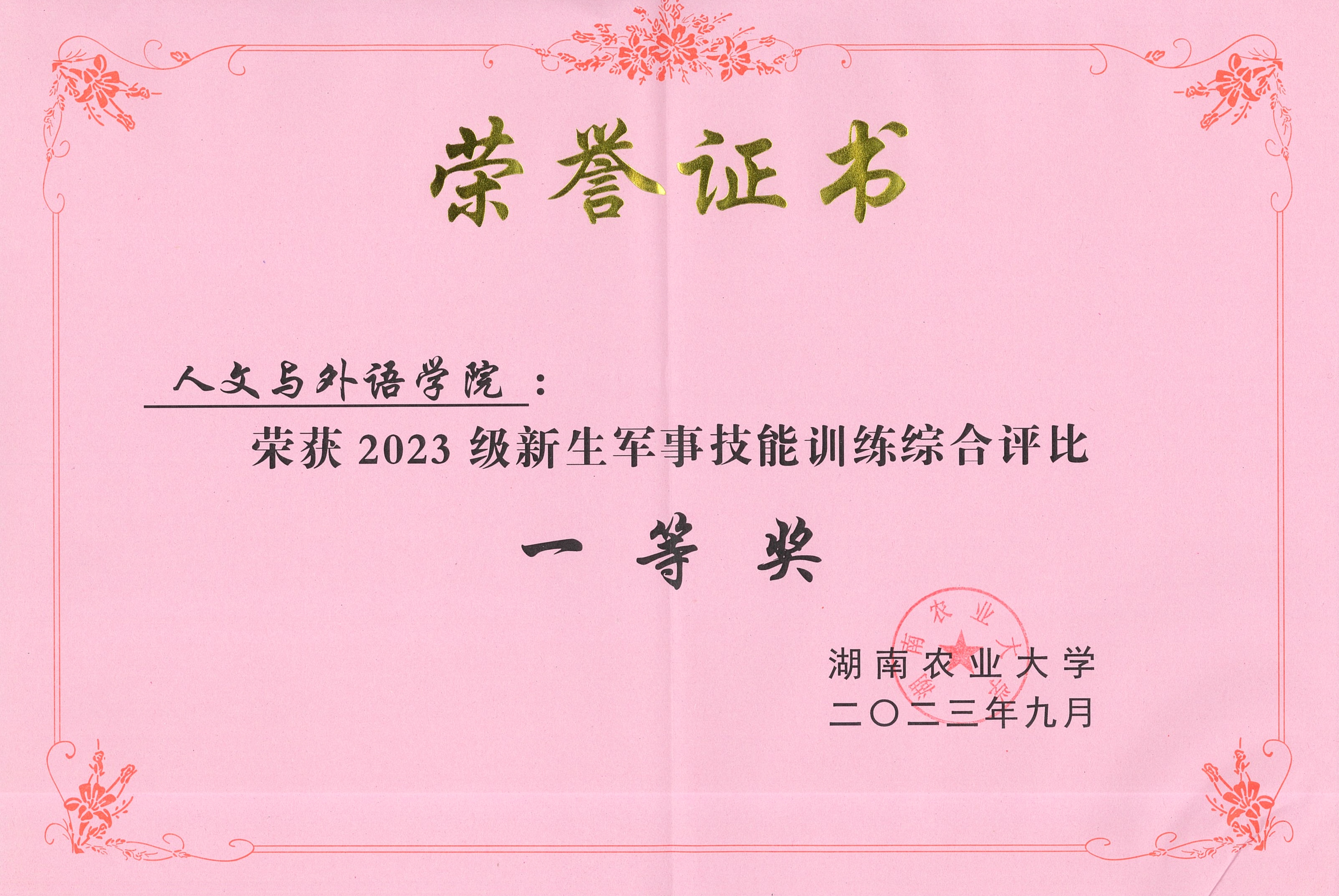 2023级新生荣获军训技能训练综合评比一等奖
