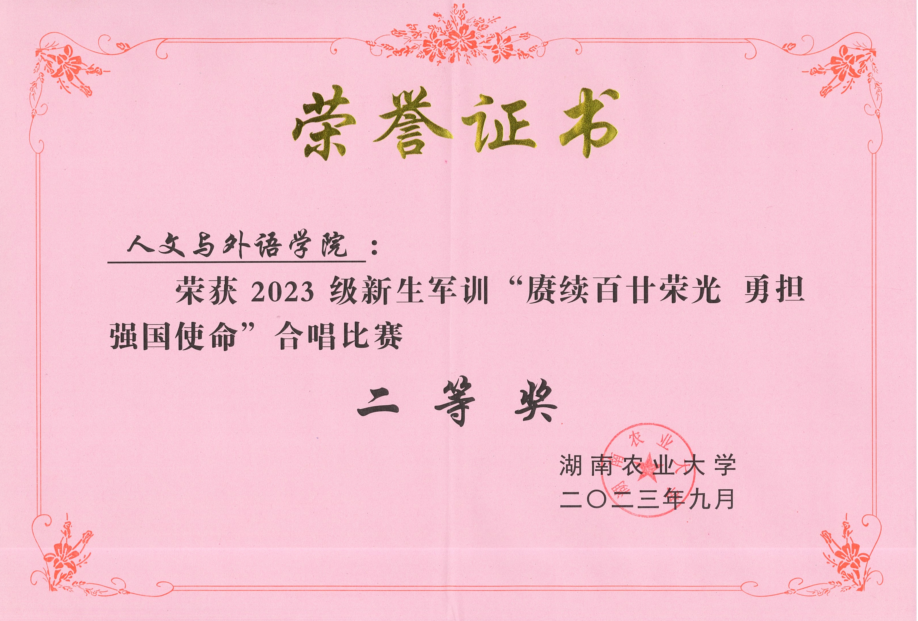2023级新生荣获“赓续百廿荣光 勇担强国使命”合唱比赛二等奖