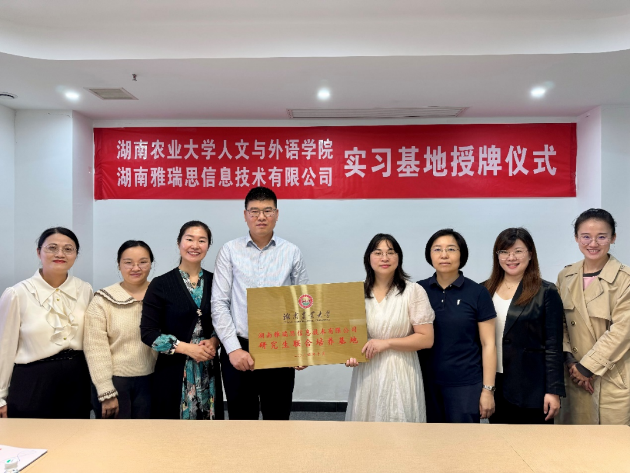 (本网讯 人文与外语学院 林椿)2024年10月17日,在金秋十月的暖阳下,人文与外语学院在雅瑞思信息技术有限公司隆重举行了学院与公司研究生联合培养基地授牌仪式。