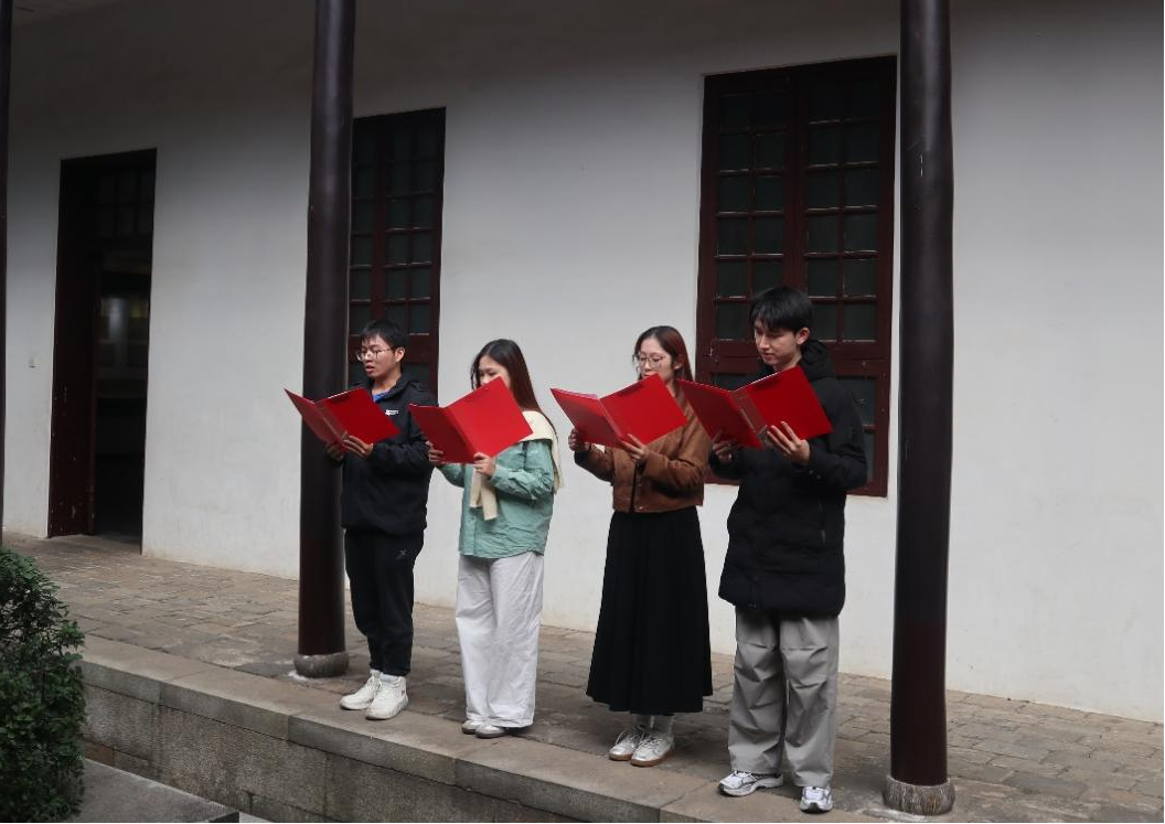 在岳麓书院的朱张治学,毛蔡经世的感召下,罗攀辉、左汶艳、左心雨、曾喜等四名研究生代表进行了中英文朗诵表演。他们声情并茂的朗诵,不仅展现了农大学子的风采,更彰显了外语学院研究生的学科素养与思想觉悟。现场观众报以热烈的掌声和喝彩声,为活动增添了浓厚的文化氛围。