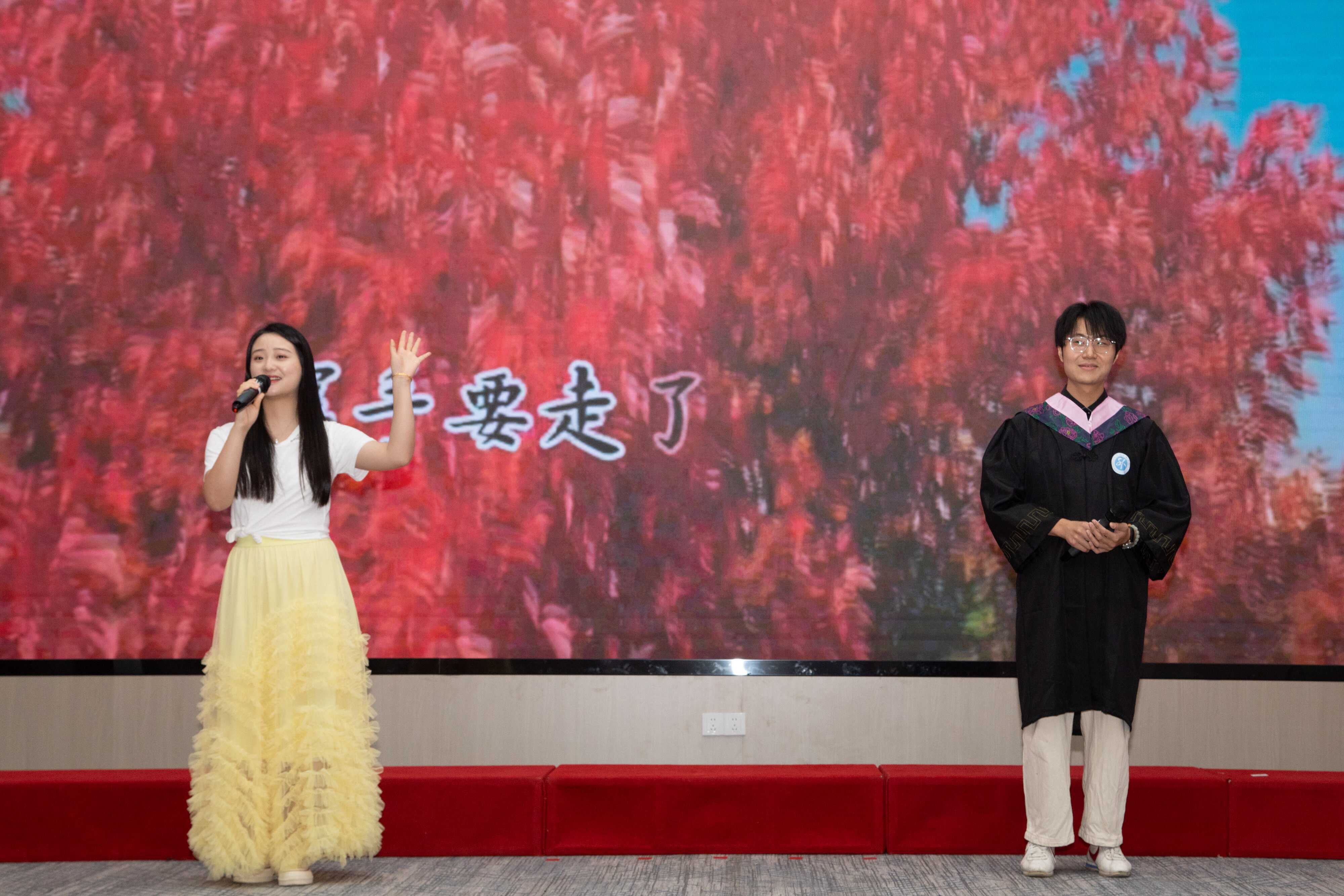 毕业班辅导员李晶老师和吴学季同学深情演唱《是老师 是学生》