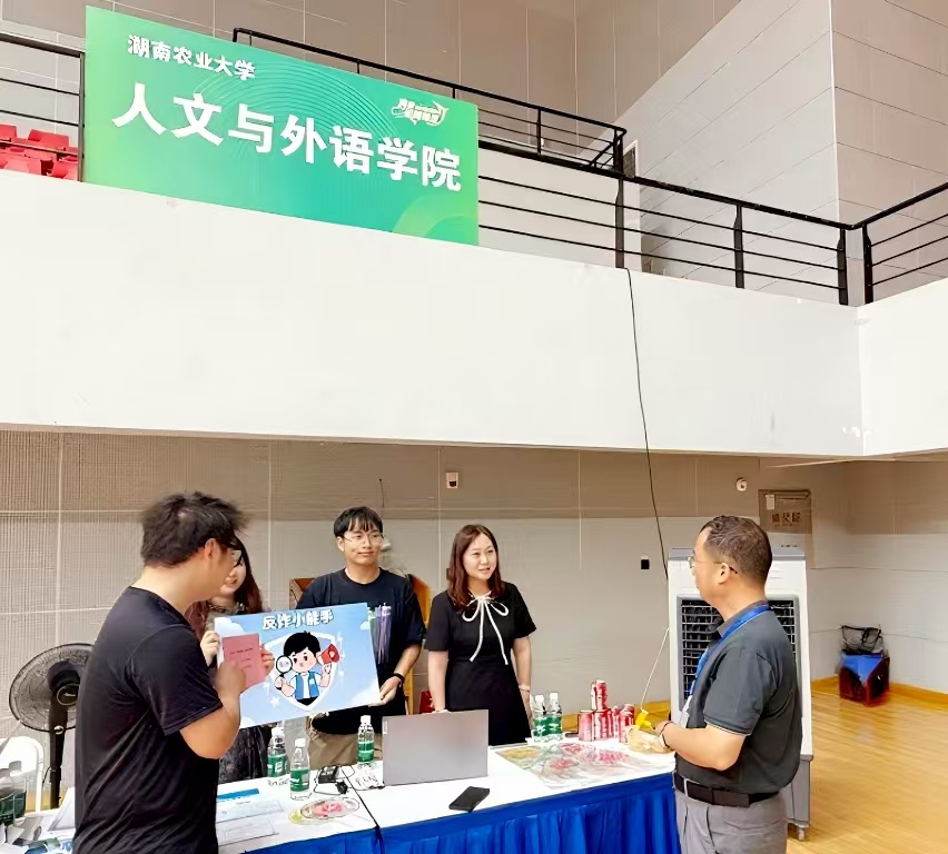 材料发放区前,一排印有“前程似锦”“逐梦昂扬”“筑梦湘农”等励志语言的定制可乐成为亮点;而“防电诈知识闯关挑战”则通过“真假链接辨别”“个人信息保护”等五个互动关卡,让新生在沉浸体验中提升安全意识。顺利通关的王同学赞叹:“原来点击陌生链接风险这么大!这种形式比普通宣传生动得多。”
