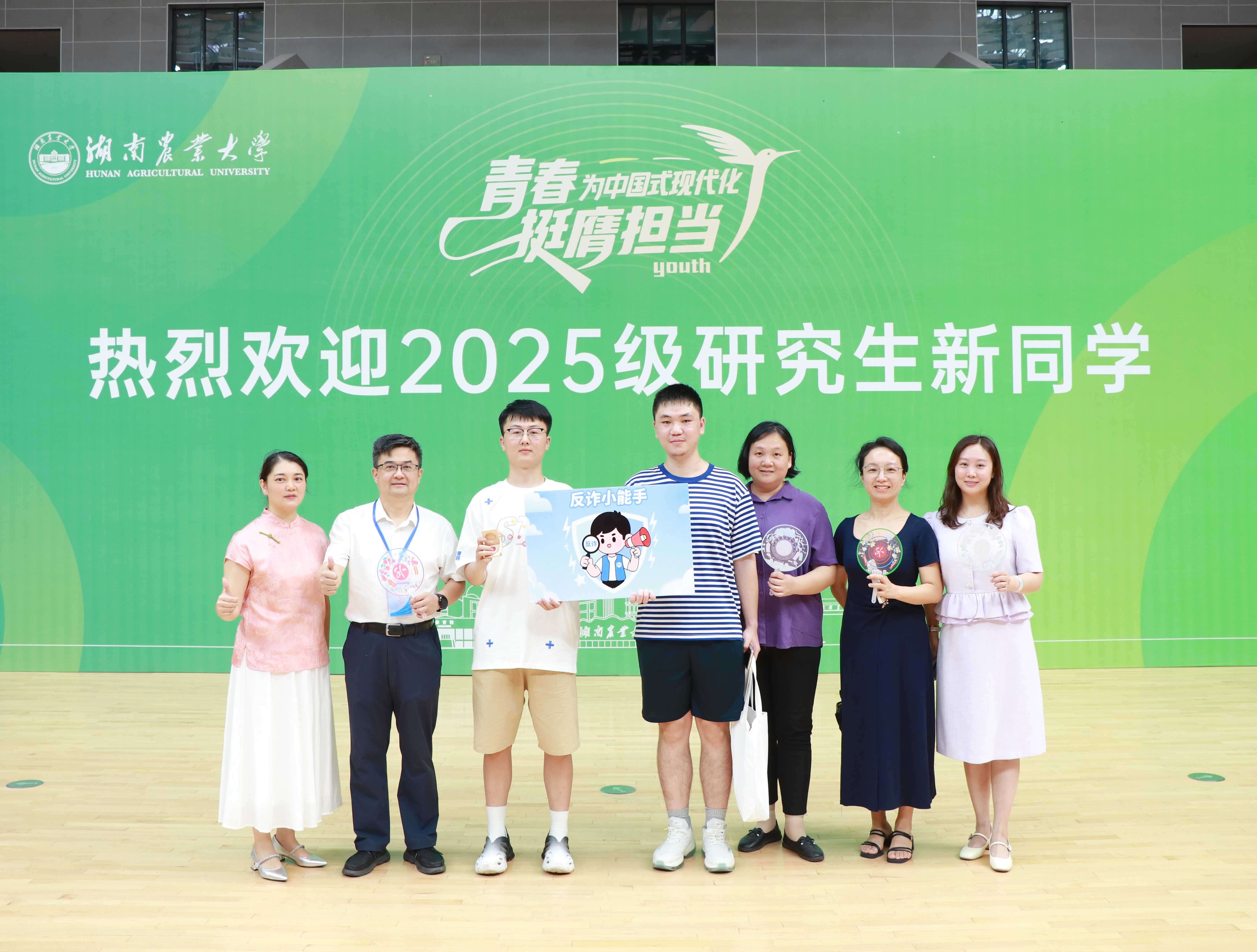 9月6日清晨,湖南农业大学西门体育馆内人头攒动,人文与外语学院2025级研究生迎新工作正式启动。学院推出“扇传情谊”“百事寄福”“安全闯关”等系列创意活动,融合传统文化与现代服务,为新生带来一场温情与创意并存的入学体验。副校长谢方平亲临现场,详细了解 “文创扇面”“防诈闯关” 等特色环节,对学院将文化传承、安全教育与迎新服务有机结合的创新做法给予高度肯定,也为现场忙碌的师生们注入了更多动力。
