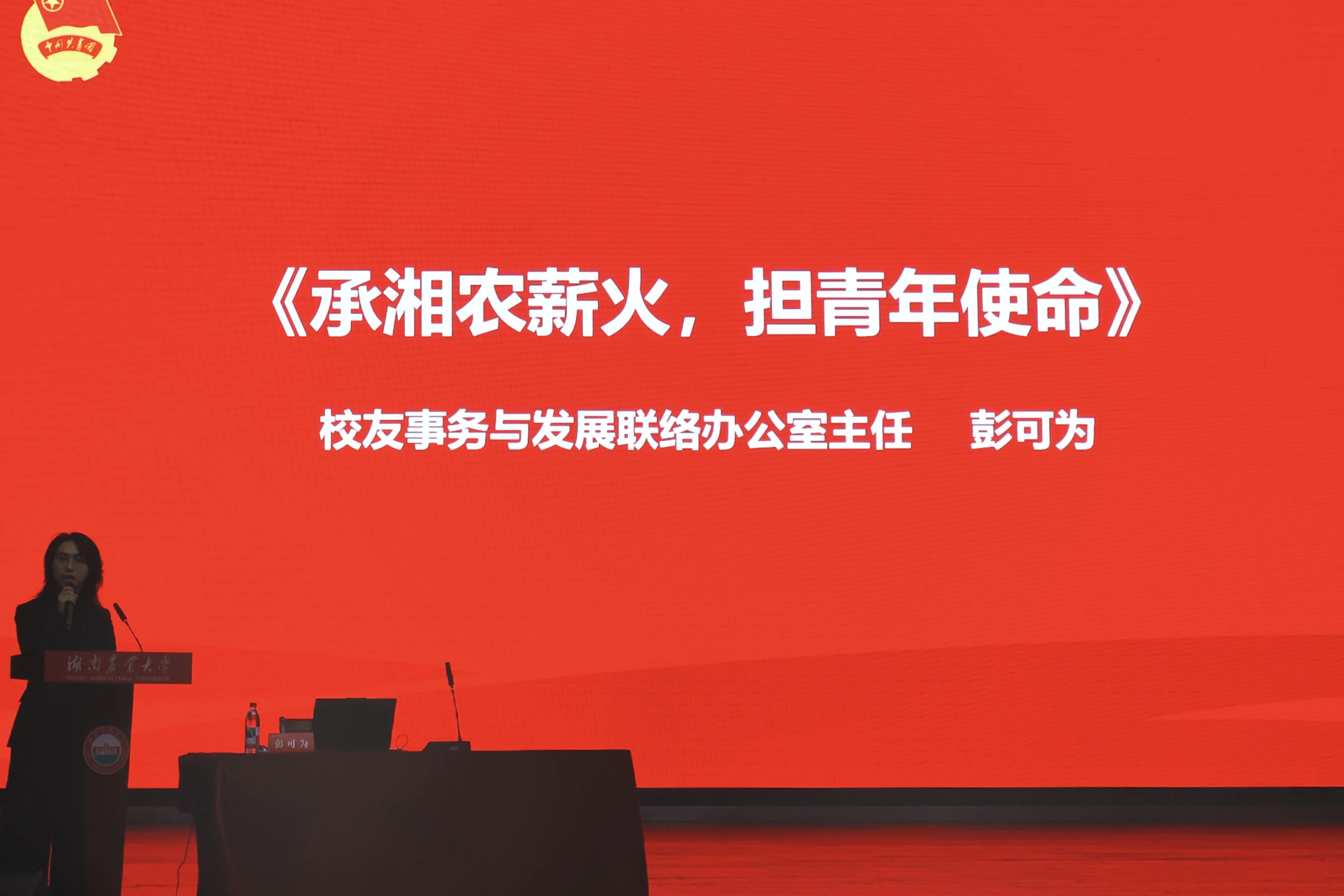 校友事务发展与联络办公室彭可为主任带来《承湘农薪火,担青年使命》讲座,带领学子们回溯湖南农业大学的发展历程。从办学初心到发展沿革,从学术成就到育人理念,彭主任通过生动讲述,让学子们深刻领略了学校“朴诚、奋勉、求实、创新”的校训精神。正如“把论文写在祖国大地上,把科技成果应用到现代化建设的实践中”所传递的信念,他勉励青年骨干牢记校史传承,将个人成长融入学校发展与国家建设,以青春之力续写湘农华章。