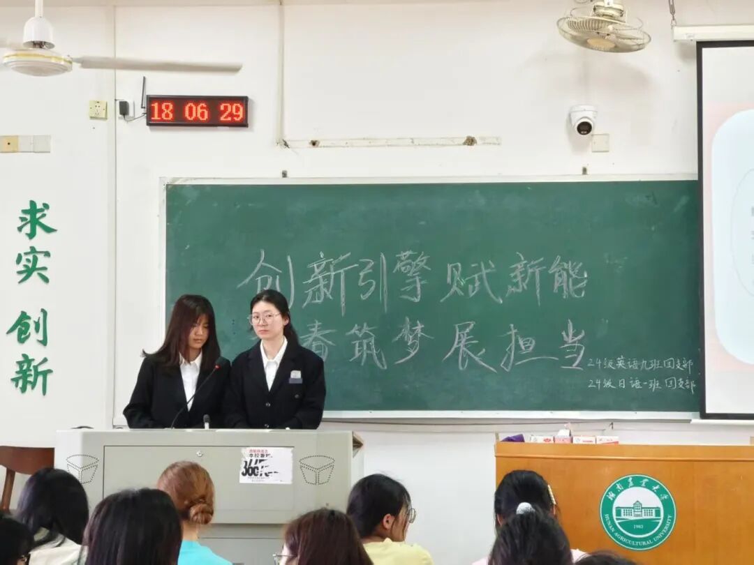 4月10日,人文与外语学院在七教开展了以“创新引擎赋能新,青春筑梦展担当”为主题的班会学习,如磁石般吸引了众多湘农学子踊跃参与,旨在深度挖掘学子们的创新潜能,全力点燃创新创业的激情火焰。