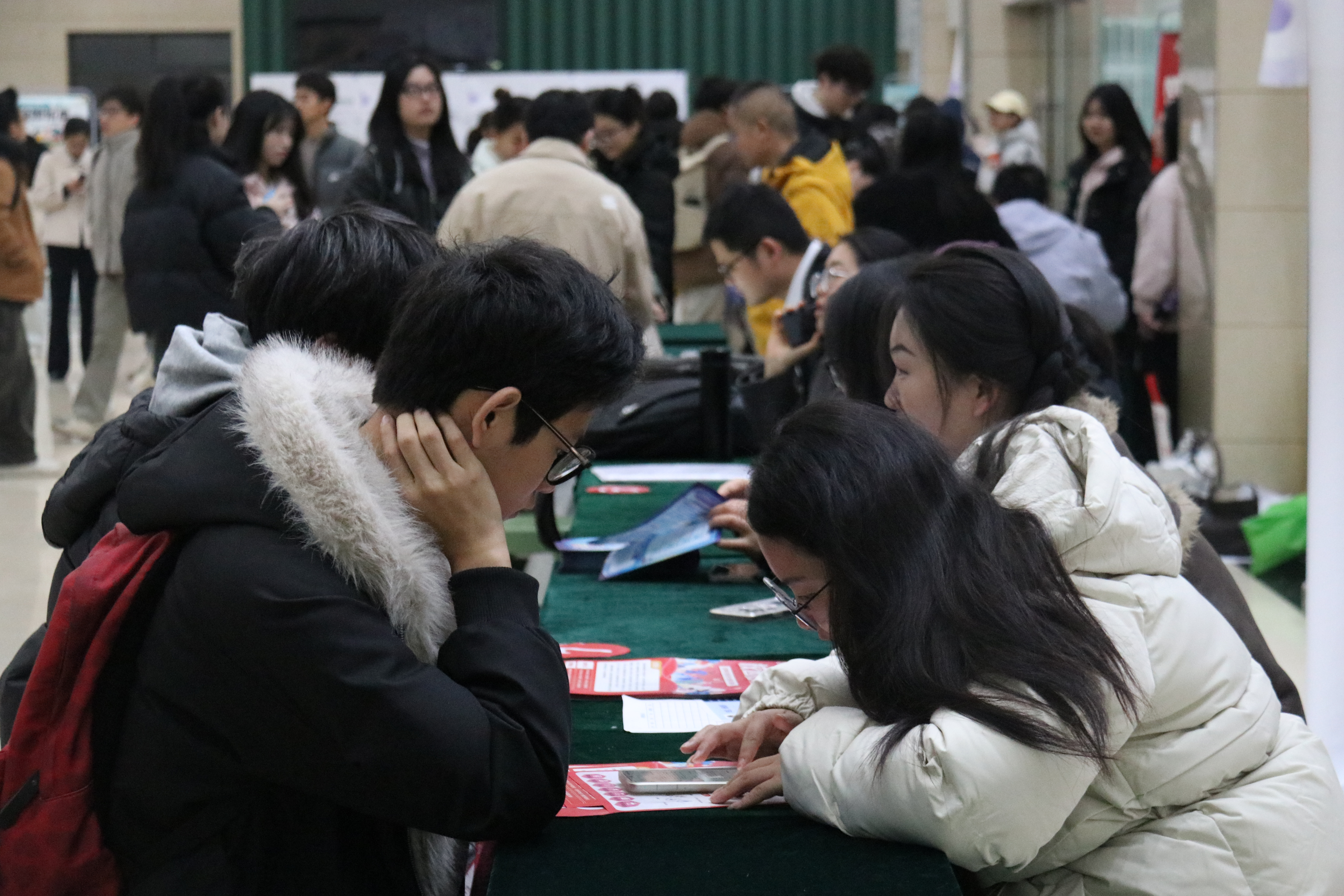 为拓宽毕业生就业渠道、促进高质量充分就业,由人文与外语学院联合教育学院、马克思主义学院主办的“言通中外·职达未来”2026届毕业生供需双选会于12月23日上午9:30—12:00在九教一楼大厅举行。活动吸引52家用人单位进校揽才,提供1300余个就业岗位,现场参会学生726人,整体组织高效、对接顺畅、成效显著。