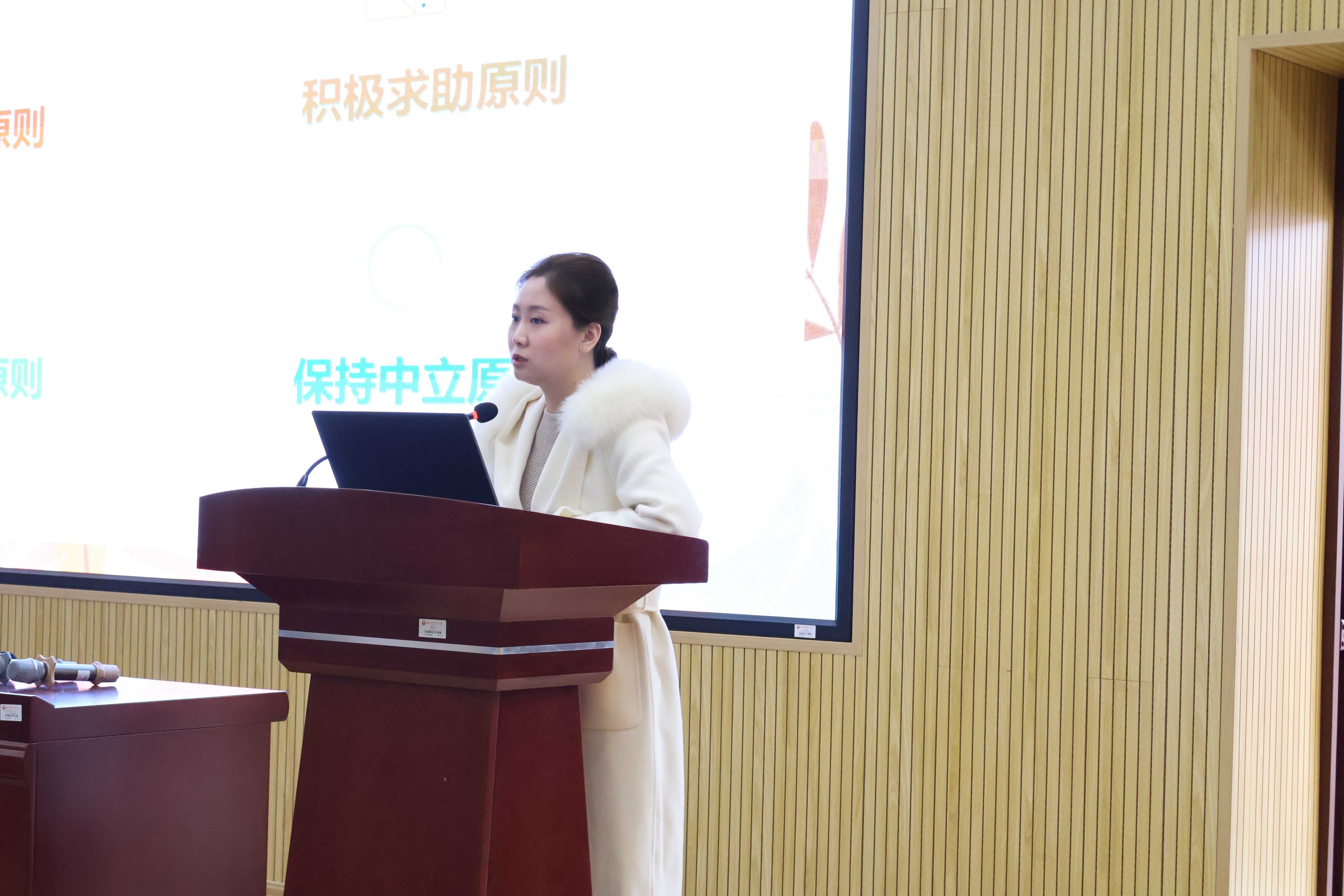 培训过程中,刘老师详细阐述了朋辈互助员的工作职责、报告制度以及需重点关注的人群特征。她强调,每位朋辈互助员都应树立强烈的危机预警和信息报告意识,同时要学会情绪疏导和关怀陪伴,确保在提供帮助的过程中遵循保密原则。针对部分学员可能存在的“不愿报告”心理,刘老师从五个方面进行了深入剖析,打消了大家的顾虑。